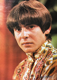/Davy (David Thomas) JONES/ (1945 - 29.2.2012), английский певец и актер. Был приглашен на американское телевидение сниматься в ситкоме The Monkees - про парней, решивших создать поп-группу. Сначала так и было: они следовали сценарию, исполняли предлагаемые им песни, на музыкальных инструментах за них играли другие. Потом оказалось, что талантов у ребят больше, чем думали. Они умели играть и сочинять музыку, потому и стали одной из самых популярных поп-групп второй половины 1960-х годов, а над названием голову ломать им не пришлось. |