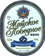 "Майское победное" - 14% - 4,8% об. - 0,5 л. Отличное пиво. Будете спрашивать, чем оно так замечательно, сразу не отвечу. Дегустации в полевых условиях явно не получилось, рецепторы не выдержали. Надеюсь, что Павел Егоров сможет более подробно описать хотя бы часть сортов, которые он выпил в спокойной домашней обстановке. Сорт впервые был выпущен к 50-тилетию Победы. В составе присутствует несоложенка - рисовая крупа. Ниже представленные сорта также варятся с добавлением к солоду то кукурузной крупы, то пшеничной. |