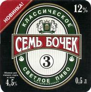 "Семь бочек классическое N 3" - 12% - 4,5% об. - 0,5 л. ЗАО "Семей