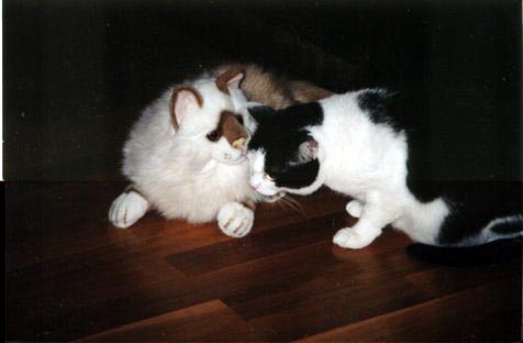 Меня зовут Геннадий Скрипник. Я живу в Мурманске и тоже люблю кошек. Посылаю свои стихи об этих замечательных зверьках. Опус .1 Милые кошки, нежные кошки.С нами стареете вы понемножку. Жизнь, как и вам, нам дана понарошку, Черные спинки, белые ножки... Опус .2Ободрала ЛюбкаПо углам обои: Лапушки-подушки, Иглы-коготки. С мордочкой смешною Лапкой ухо моет, Спутала глупышка Нитки и мотки. После вкусной рыбки, Облизнувшись сладко, Спала на коленях, Лапкой глаз прикрыв. И во сне кошачьем Вздрагивают лапки, Снится сон Любашке, Видимо, про крыс. Опус .3Черная гладкая шуба,Белые туфли и блуза. Щеголем движется Люба, Рыбки откушав от пуза. Прыг! - и она на диване. Мур-р! - мелодично поет. Важно пройдясь между нами, Ляжет на чей-то живот. Вылижет хвостик и сиськи, Мордочку лапкой утрет: Гости уже где-то близко, Сердце кошачье не врет. Машет хвостом в сильном гневе, Хвост бережет, словно сейф. Оскорбленье любой королеве - Слуга если ступит на шлейф. А голуби? Ах, эти голуби, Воркуют, садясь на карниз. Стекло, как ледок на проруби, Пробить бы - и с голубем вниз! У Любы есть муж, но не верный, Без счета ей дарит котят. Вот он и причиной, наверное, За желтый задумчивый взгляд. С лоском черная шуба, Подчеркнуто белая блуза, Павою шествует Люба, Глазки от важности сузя. Геннадий Скрипник -- Best regards, Gena mailto:a00951@arcticnet.ru ![]() |