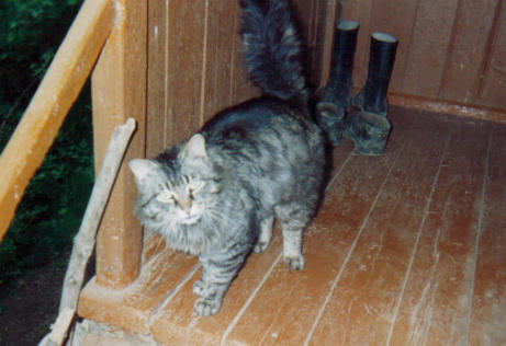 Гулял он, как и полагается кошакам, сам по себе. Он хоть и не давался в руки, но был каким-то "культурным": не лазал в форточки, по столам и диванам. Если ему нужно было на улицу, он садился около двери и очень тихо говорил: .Мяу!.. Мама удивлялась: "Наш кошак очень тихо мяукает".