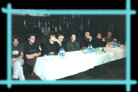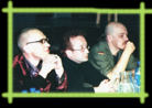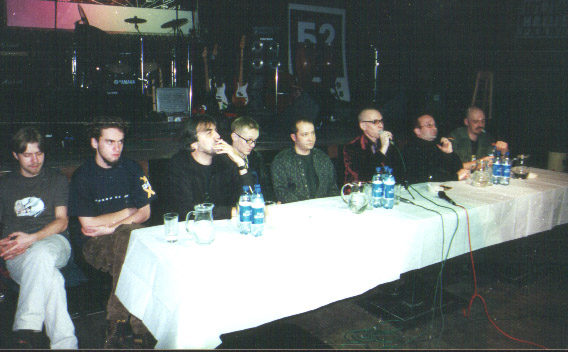 Дело в том, что время отведенное на конференцию ограничивалось 25 минутами. Началась пресс-конференция с представления музыкантов коллектива и соучастников альбома, сидящих в Президиуме. Андрей Пастернак - студия звукозаписи, Денис "Ден" Бурим - гитара, Павел Овчаров - звук, Андрей Белизов - ударные, Александр Белоносов - клавиши, Алик Исмагилов - бас гитара, А.Ф. Скляр - гитара, вокал. Особое внимание уделили Дяде Вове Родзянко как человеку, стоящему вместе с А.Ф. Скляром у истоков основания коллектива. Ему принадлежит дизайн всех альбомов и атрибутики коллектива (майки, бейсболки, плакаты). Самая главная его функция - отвечать за жизнь в группе Ва-Банкъ. Было отмечено, что данное празднование - первое коллективное мероприятие, проводимое группой на протяжении своего существования.