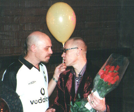 Ну как вы понимаете это была официальная часть, написанная "Шиндлером". А теперь неофициально от меня. Что еще было интересного, для начала 14 числа: перечислить тех гостей, которых видел я или успел увидеть, пожалуйста - Г. Самойлов, Макаревич с женщинами, А. Ярмольник, А. Державин, А. Бильжо, П. Филипенко (Паштет), Dj Митрофанова, Dj М. Любимов, Участница шоу "За стеклом" (та, которую выгнали), С. Галанин, весь состав Ва-Банкъ прошлого, пишущая братия всех мастей, которая тут же налетела на бесплатный хавлон и выпивон, и что меня больше всего порадовало много народа с Алтая, А. Троицкий, который весь концерт просидел с таким видом, будто придумывал разгромную статью про юбилей Дядек. Но хрен вам, при всем его профессионализме ничего бы не вышло. Ребята отдавали себя зрителям без малого три часа. И так закрутили концерт, что "мертвые позавидовали живым". Сыграли всё, ну или почти все, не было "Так надо", с Егором, а жаль.