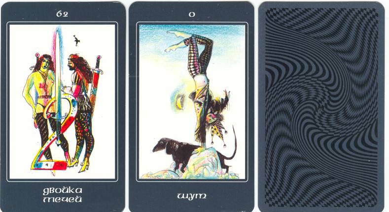 | Колода "Таро Фортуны", издательство ООО "Артемида", Россия, 2002, отпечатаны на Комбинате цветной печати, С.-Петербург, 78 листов размером 65х110 |