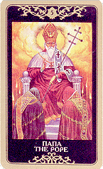 Папа (Верховный жрец, Капеллан, Вдохновение) символизирует поиск истины через откровение, мост между Божественным и Человеческим. Карта означает, что вы вносите в проект слишком много энергии, а он нуждается в организации. Это символ терпимости и снисходительности, умения учиться и пользоваться чужим опытом. Это человек, который предан идее и несет ее людям. Перевернутая карта: упование на Бога, чрезмерная доброта и неуместная щедрость, впечатлительность, уязвимость, некомфортность. |