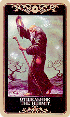 Отшельник (Благоразумие) символизирует благоразумие, управляющее волей, осмотрительность руководителя действий; развитие вглубь, отчуждение, одиночество, горечь, поиск духовных ценностей. Карта советует быть осмотрительным и внутренне собранным. В мире все взаимосвязано, и малый толчок может привести к большому обвалу. Перевернутая карта: означает самостоятельное достижение цели и эмоциональную связь с мудрым и вдохновенным человеком - Учителем. На низком уровне может означать упрямство, подозрительность, неоправданную осторожность. |