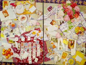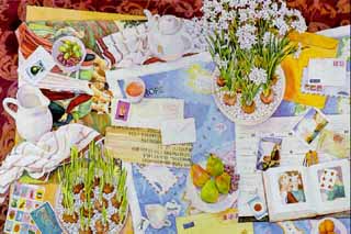 "Большой стол и пионы", 1992. Акварель, 152 х 203. Вашингтон, Частная коллекция. |