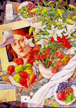 "Белые лилии и голова ангела", 1991. Акварель, 104 х 74. Вашингтон, Частная коллекция.. |