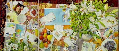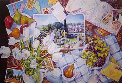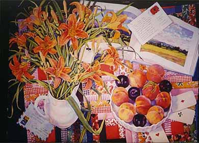 "Персики и летние поля", 1998. Акварель, 56 х 92. Вашингтон, Галерея К. |
