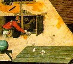 В фрагменте картины "Нидерландские пословицы" проиллюстрированы две поговорки