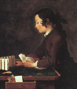 и "Мальчик,играющий с картами" Шарден мастерски передает воздушную среду и цвет, а