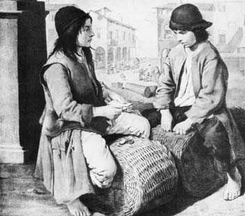 основной темой которого стали жанровые сцены из жизни городской бедноты. Выражение лиц двух подростков-носильщиков, играющих в карты на фоне городского пейзажа,