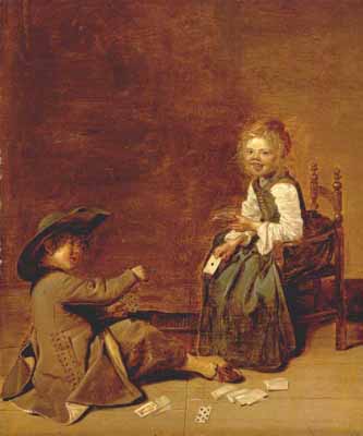 "Дети, играющие в карты". Масло, дерево. США, Вильямстаун, Институт Стерлинга и Френсин Кларк. |