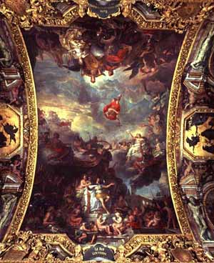 "Король-самодержец, олицетворение величия Франции". Роспись по потолку, Версаль, Зеркальный зал. |