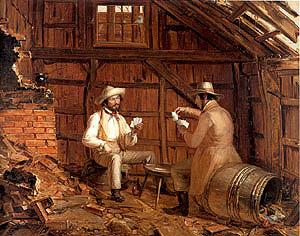 "Игроки в карты". ок. 1847-50 г. Холст, масло. 48,3 x 62,9. Рейнолда Хауз, Музей американского искусства, Винстон-Салем. |