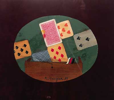 "Натюрморт с игральными картами",1989. Масло, холст, смешанная техника, 24 х 29,5.