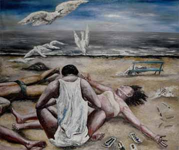 "Лежащие на пляже II" ( правая часть диптиха), 1987. Холст, масло, 150х140. США, частная коллекция Лейн. |