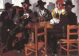 "Игроки в карты". 1932 г. Темпера, дерево, 39x52. Будапешт. Частная коллекция. |