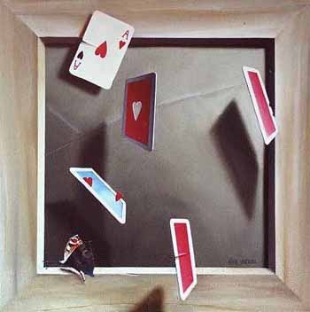 "Падающие карты", 51 х40,6. Масло, дерево. |
